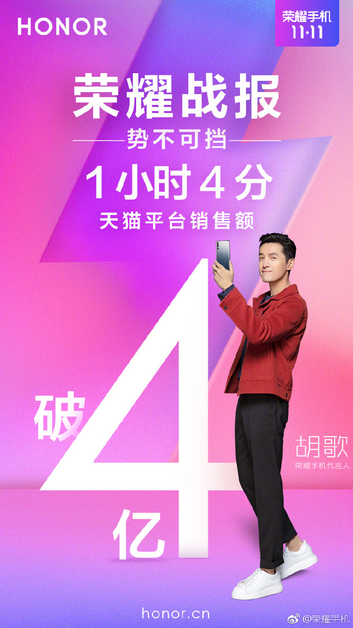 截止1小时四分 天猫商城荣誉旗靓店销售总额破4亿!