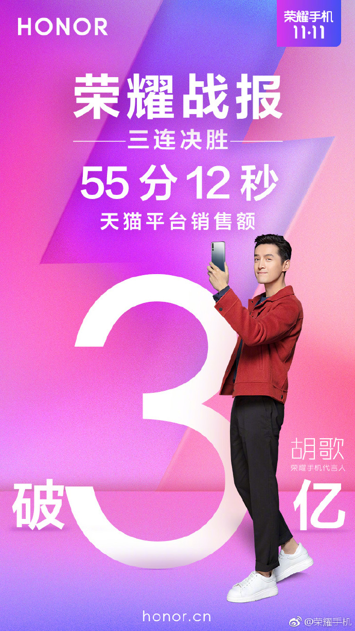 截止55分12秒,天猫商城荣誉旗靓店销售总额破三亿!